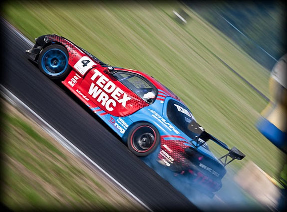 W pierwszą sobotę października odbyła się finałowa runda Driftingowych Mistrzostw Polski. Do Poznania przyjechało kilku zagranicznych gości, ale tutaj zdecydowanie jakość miała większe znaczenie niż ilość. Odwiedziło nas 3 zawodników ze Skandynawii i jeden Australijczyk :) Australijczyk - Luke Fink, to jeden z najlepszych zawodników na świecie. W 2009 roku wygrał Australijską Serię, natomiast już rok później wygrał najlepszą europejską serię JDM ALLSTARS w Wielkiej Brytanii. Tutaj miał do dyspozycji samochód firmy Piloti o mocy ponad 300km.