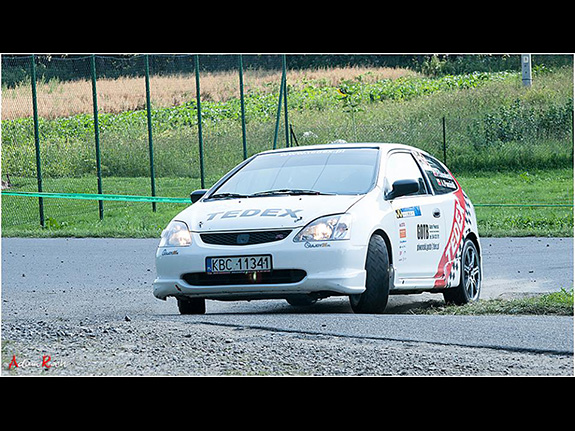 Niestety tyle szczęścia nie miała nasza druga załoga- Patryk Osowiecki pilotowany przez Adama Piwońskiego startujący Hondą Civic. Po udanym starcie i przejechaniu na dobrej pozycji 2 pierwszych odcinków podczas 3 os „ Glinka 1”mieli poważny wypadek. Próbując wrócić na trasę nie zauważyli zarośniętego rowu. Urwali koło, zjechali na pobocze gdzie auto stanęło w płomieniach. Najprawdopodobniej trawa zatliła się od rozgrzanego wydechu. Auto niestety doszczętnie spłonęło, na szczęście Patrykowi i Adamowi nic się nie stało. Niestety z auta udało się uratować tylko rzeczy osobiste. Mamy nadzieję że Patryk i Adam dołączą do nas jeszcze w tym roku, trzymamy za Was kciuki.